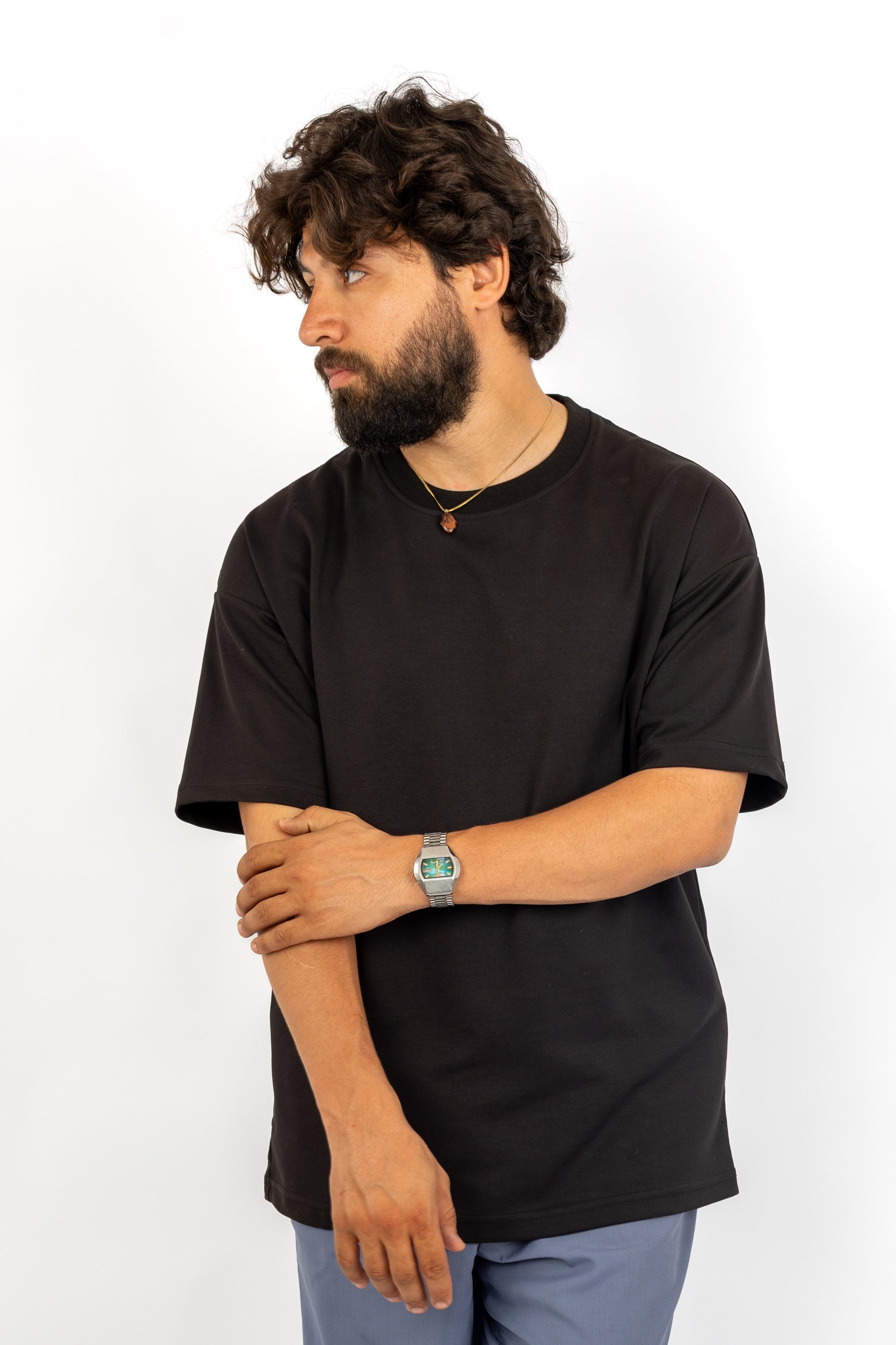 Black Basic Oversized T-Shirt – Relaxed Fit Essential